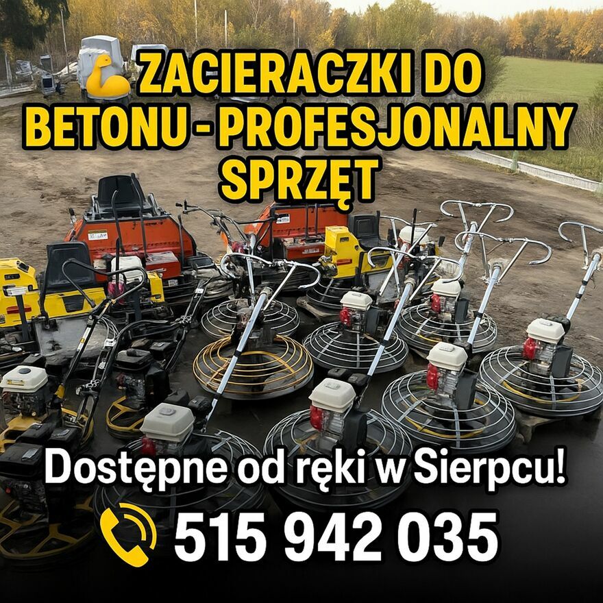Wynajem sprzętu budowlanego i ogrodniczego w Sierpcu – zacieraczki, zagęszczarki, szlifierki, agregaty malarskie, rusztowania, osuszacze, niwelatory, sprzęt ogrodniczy. Odbiór Dworcowa 74. Tel. 515 - pokaż numer telefonu - .